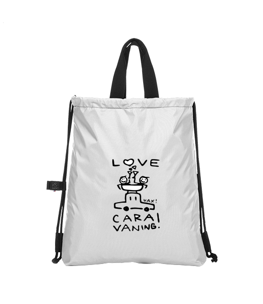 Original gymsack - BAG URBAN with design 1026 LOVE CARA VANING in color WHITE