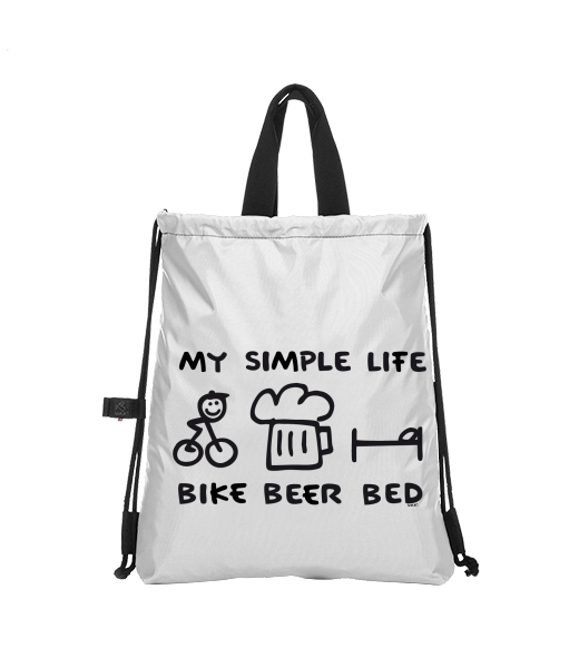 Original gymsack - BAG URBAN with design 1056 BIKE BEER BED in color WHITE