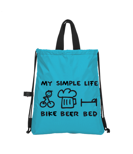 Original gymsack - BAG URBAN with design 1056 BIKE BEER BED in color BLUE ATOLL