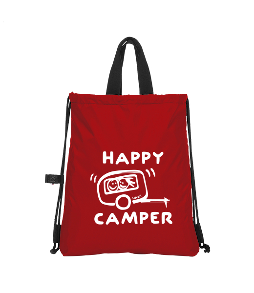 Original gymsack - BAG URBAN with design 1116 HAPPY CAMPER in color CHILLY PEPPER RED
