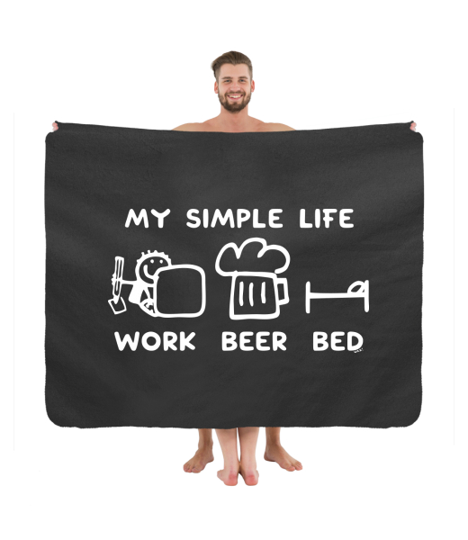 The original picnic blanket imprinted with design 1211 MY SIMPLE LIFE WORK BEER BED in color BLACK