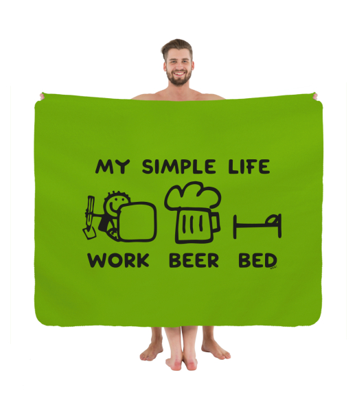 The original picnic blanket imprinted with design 1211 MY SIMPLE LIFE WORK BEER BED in color PARROT GREEN
