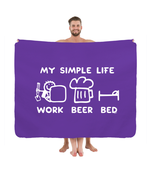 The original picnic blanket imprinted with design 1211 MY SIMPLE LIFE WORK BEER BED in color VIOLET
