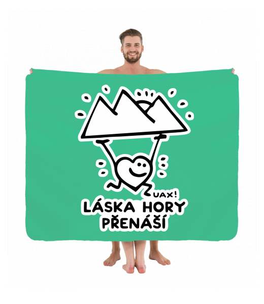 We make sustainable UAX clothing! - hand sewn in the Czech Republic uaxAccessories uaxAll productsTowelsPRINTED PICNIC BLANKETdesign 1264 - LÁSKA HORY PŘENÁŠÍEUCALYPTO GREEN