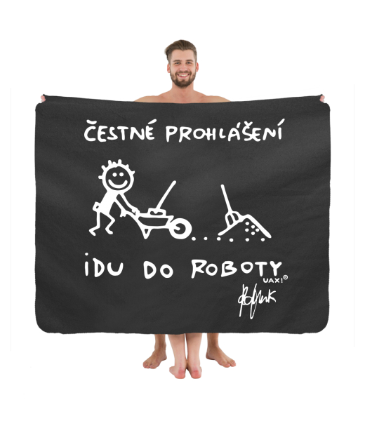 The original picnic blanket imprinted with design 1303 ČESTNÉ PROHLÁŠENÍ IDU DO ROBOTY in color BLACK