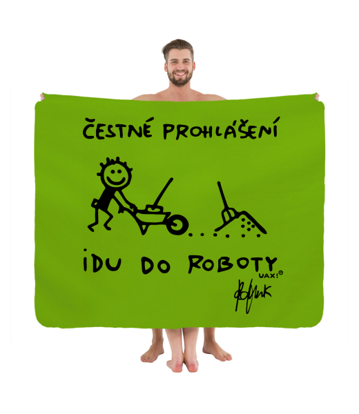 The original picnic blanket imprinted with design 1303 ČESTNÉ PROHLÁŠENÍ IDU DO ROBOTY in color PARROT GREEN