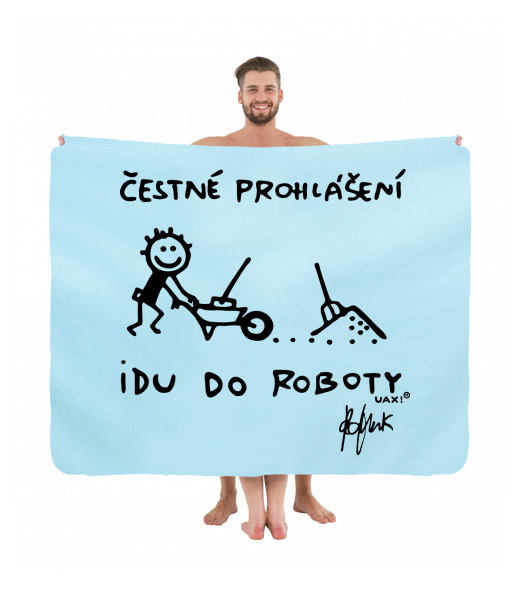 The original picnic blanket imprinted with design 1303 ČESTNÉ PROHLÁŠENÍ IDU DO ROBOTY in color PASTEL BLUE