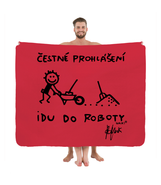The original picnic blanket imprinted with design 1303 ČESTNÉ PROHLÁŠENÍ IDU DO ROBOTY in color RED