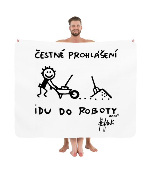 The original picnic blanket imprinted with design 1303 ČESTNÉ PROHLÁŠENÍ IDU DO ROBOTY in color WHITE