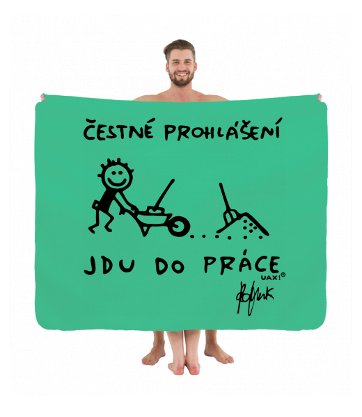 The original picnic blanket imprinted with design 1304 ČESTNÉ PROHLÁŠENÍ JDU DO PRÁCE in color EUCALYPTO GREEN