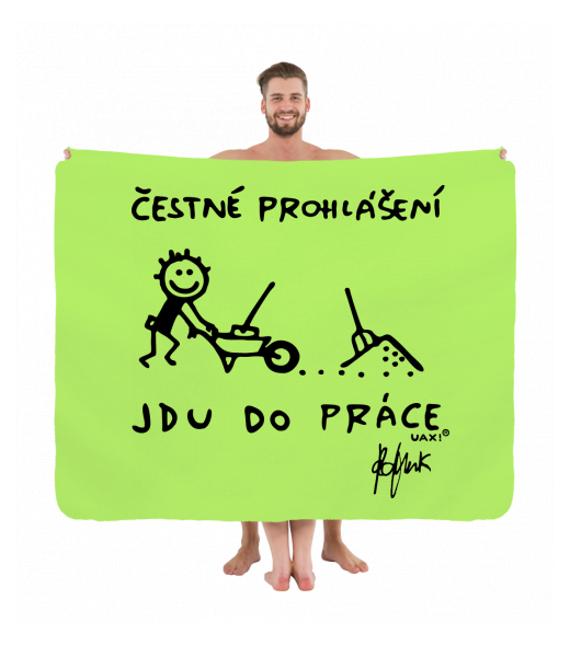We make sustainable UAX clothing! - hand sewn in the Czech Republic uaxAccessories uaxAll productsTowelsPRINTED PICNIC BLANKETdesign 1304 - ČESTNÉ PROHLÁŠENÍ JDU DO PRÁCEFLUO GREEN