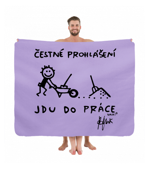 The original picnic blanket imprinted with design 1304 ČESTNÉ PROHLÁŠENÍ JDU DO PRÁCE in color LAVENDER