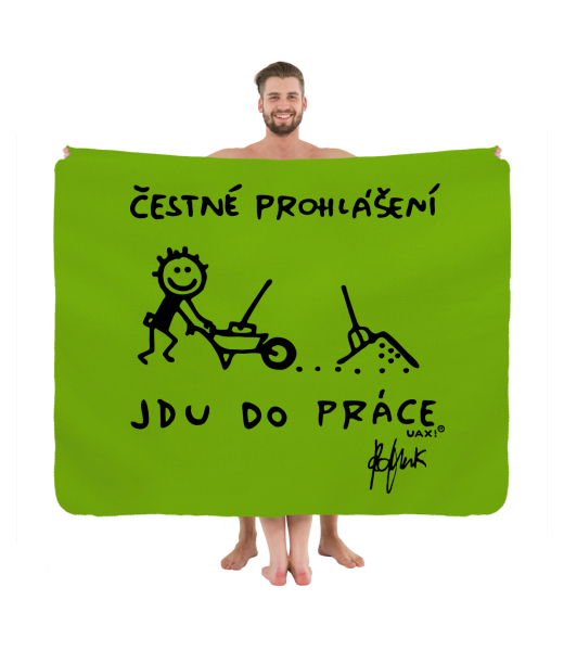The original picnic blanket imprinted with design 1304 ČESTNÉ PROHLÁŠENÍ JDU DO PRÁCE in color PARROT GREEN