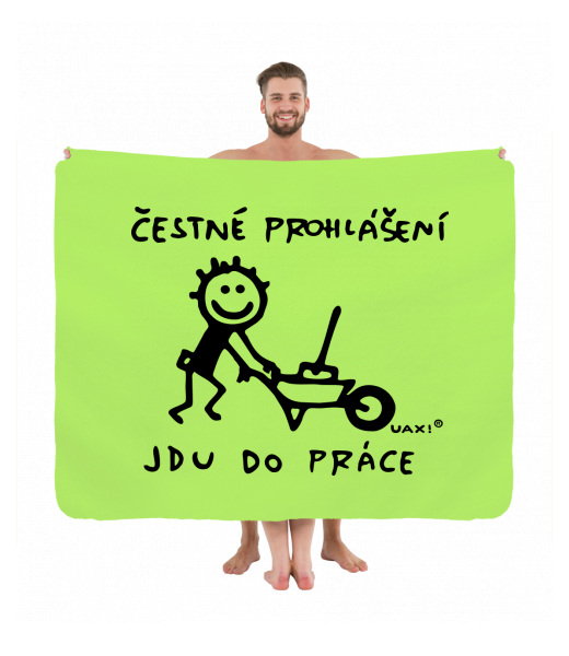 The original picnic blanket imprinted with design 1305 ČESTNÉ PROHLÁŠENÍ JDU DO PRÁCE 2 in color FLUO GREEN