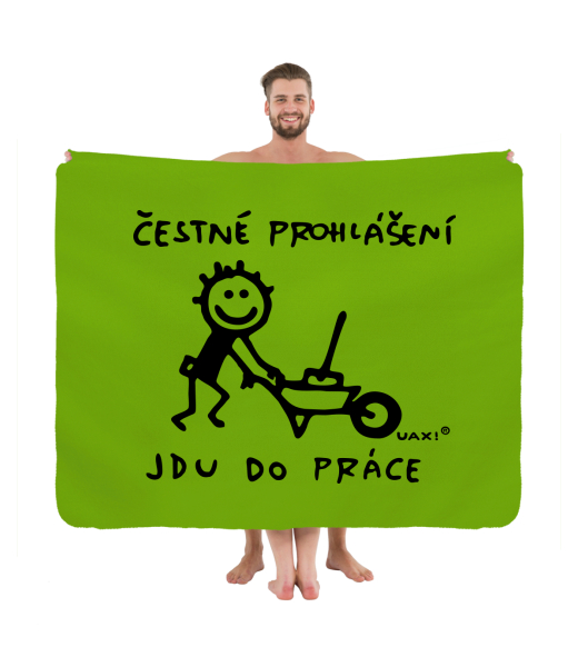 The original picnic blanket imprinted with design 1305 ČESTNÉ PROHLÁŠENÍ JDU DO PRÁCE 2 in color PARROT GREEN