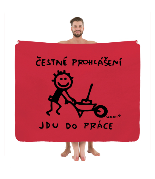 The original picnic blanket imprinted with design 1305 ČESTNÉ PROHLÁŠENÍ JDU DO PRÁCE 2 in color RED