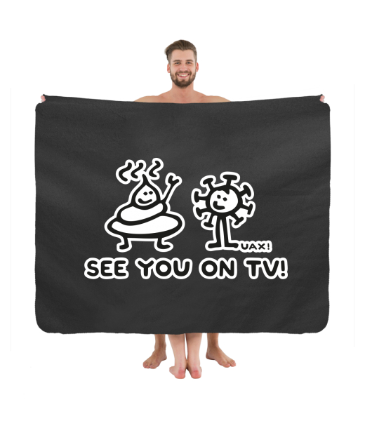 The original picnic blanket imprinted with design 1306 SEE YOU ON TV in color BLACK
