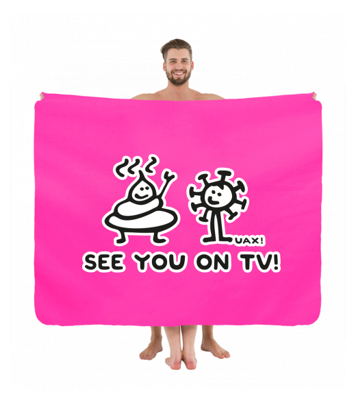 We make sustainable UAX clothing! - hand sewn in the Czech Republic uaxAccessories uaxAll productsTowelsPRINTED PICNIC BLANKETdesign 1306 - SEE YOU ON TVFLUO PINK