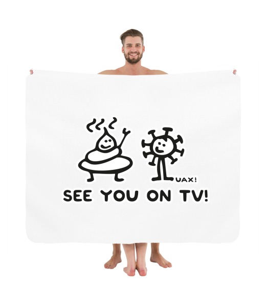 We make sustainable UAX clothing! - hand sewn in the Czech Republic uaxAccessories uaxAll productsTowelsPRINTED PICNIC BLANKETdesign 1306 - SEE YOU ON TVWHITE