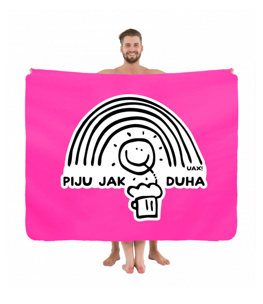 We make sustainable UAX clothing! - hand sewn in the Czech Republic uaxAccessories uaxAll productsTowelsPRINTED PICNIC BLANKETdesign 1324 - PIJU JAK DUHAFLUO PINK