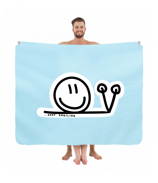 The original picnic blanket imprinted with design 420 KEEP SNAIL in color PASTEL BLUE