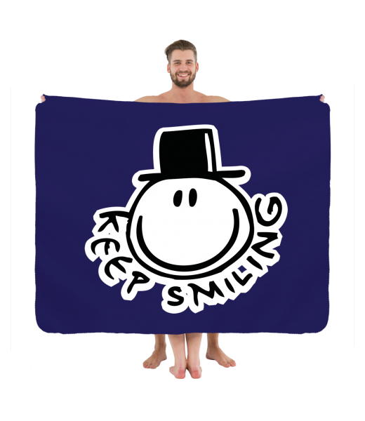 We make sustainable UAX clothing! - hand sewn in the Czech Republic uaxAccessories uaxAll productsTowelsPRINTED PICNIC BLANKETdesign 517 - KEEP SMILINGMIDNIGHT BLUE