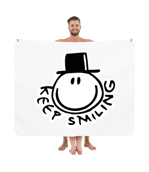We make sustainable UAX clothing! - hand sewn in the Czech Republic uaxAccessories uaxAll productsTowelsPRINTED PICNIC BLANKETdesign 517 - KEEP SMILINGWHITE