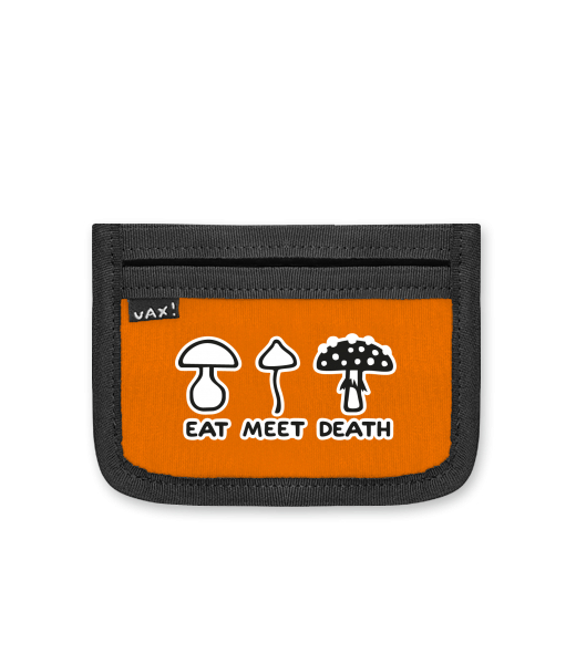 We make sustainable UAX clothing! - hand sewn in the Czech Republic uaxAccessories uaxAll productsWalletsCARD COVERdesign 1177 - EAT MEET DEATHSIGNAL ORANGE