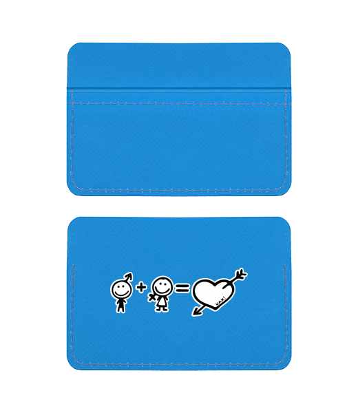 Slim wallet or card case with design 1065 MATH OF LOVE in color CAPRI BLUE