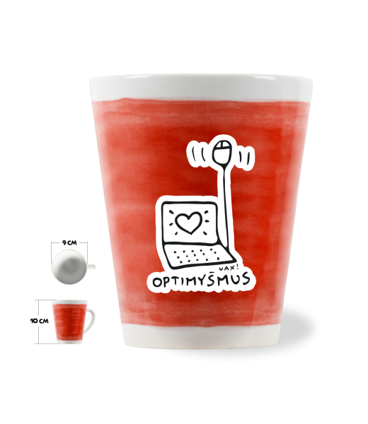 The original LATTE CUP UAX! a volume of 0.25L with design Cycling with design 1040 OPTIMYŠMUS in color TOMATO