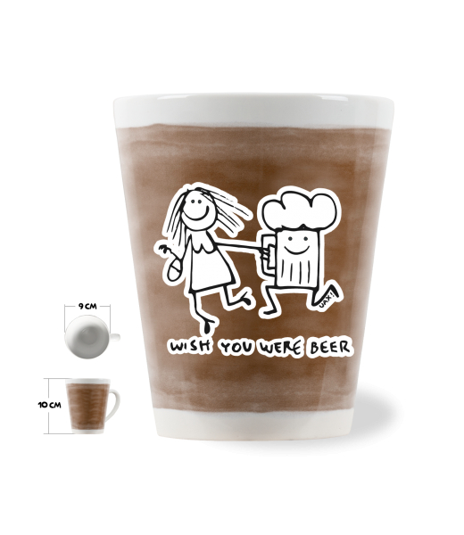 The original LATTE CUP UAX! a volume of 0.25L with design Cycling with design 1049 WISH YOU WERE BEER in color BROWN SUGAR