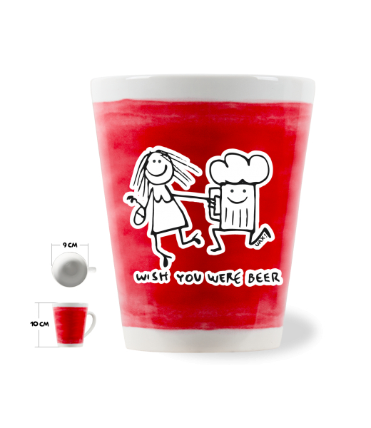 The original LATTE CUP UAX! a volume of 0.25L with design Cycling with design 1049 WISH YOU WERE BEER in color CHILLY PEPPER RED