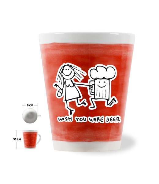 The original LATTE CUP UAX! a volume of 0.25L with design Cycling with design 1049 WISH YOU WERE BEER in color TOMATO