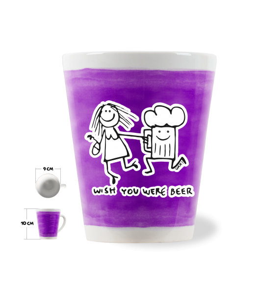 The original LATTE CUP UAX! a volume of 0.25L with design Cycling with design 1049 WISH YOU WERE BEER in color VIOLET