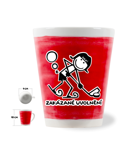 The original LATTE CUP UAX! a volume of 0.25L with design Cycling with design 1059 ZAKÁZANÉ UVOLNĚNÍ in color CHILLY PEPPER RED