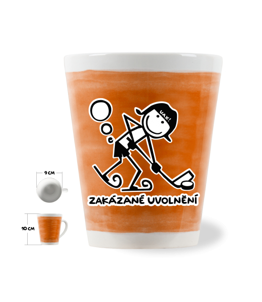 The original LATTE CUP UAX! a volume of 0.25L with design Cycling with design 1059 ZAKÁZANÉ UVOLNĚNÍ in color SIGNAL ORANGE