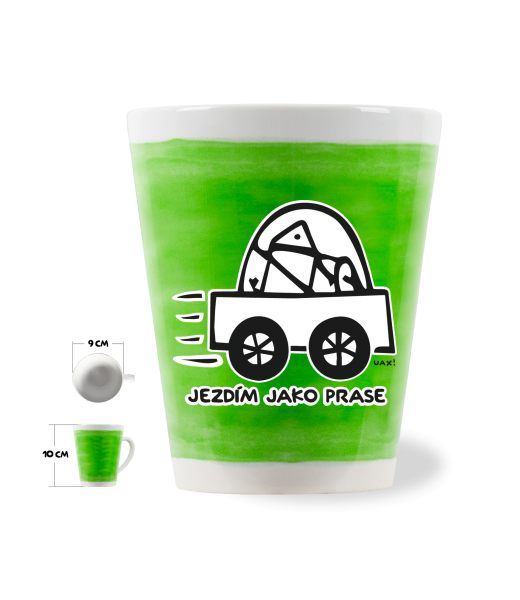 We make sustainable UAX clothing! - hand sewn in the Czech Republic uaxAccessories uaxCyclingCups and mugsLATTE CUP 0.25Ldesign 1072 - JEZDÍM JAKO PRASEPARROT GREEN