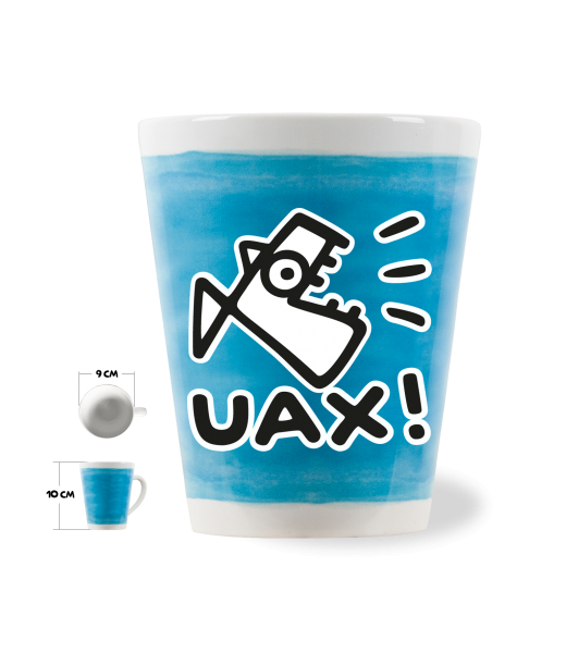 The original LATTE CUP UAX! a volume of 0.25L with design Cycling with design 1086 LOGO UAX! in color BLUE ATOLL