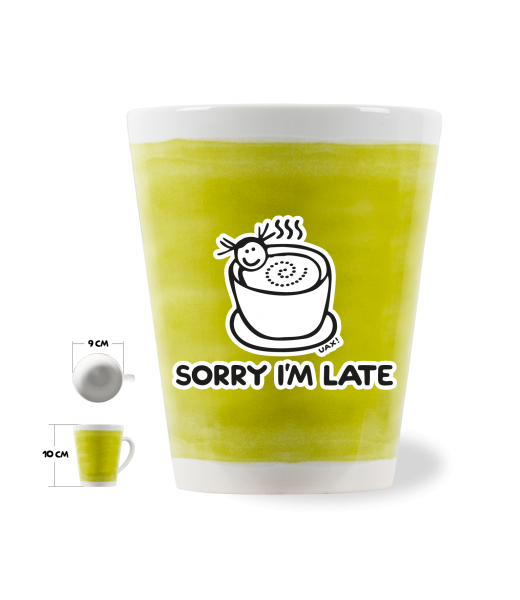 The original LATTE CUP UAX! a volume of 0.25L with design Cycling with design 1087 SORRY IM LATE in color NEW YORK