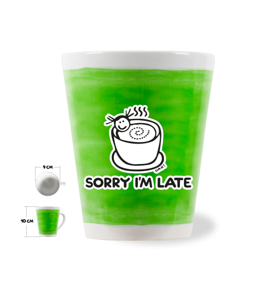 We make sustainable UAX clothing! - hand sewn in the Czech Republic uaxAccessories uaxCyclingCups and mugsLATTE CUP 0.25Ldesign 1087 - SORRY IM LATEPARROT GREEN