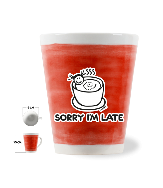 The original LATTE CUP UAX! a volume of 0.25L with design Cycling with design 1087 SORRY IM LATE in color TOMATO