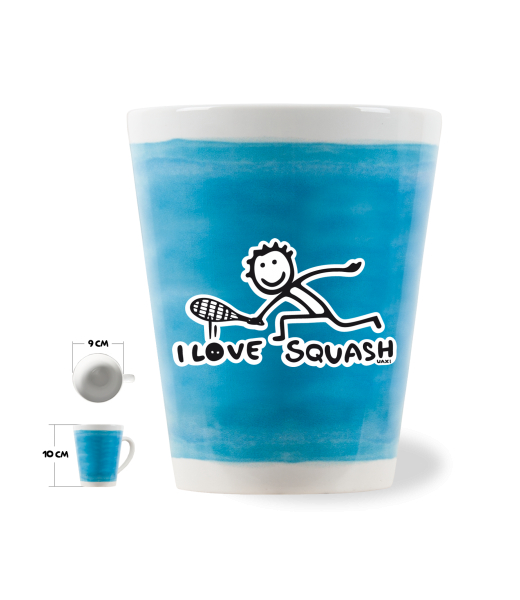 The original LATTE CUP UAX! a volume of 0.25L with design Cycling with design 1091 I LOVE SQUASH in color BLUE ATOLL