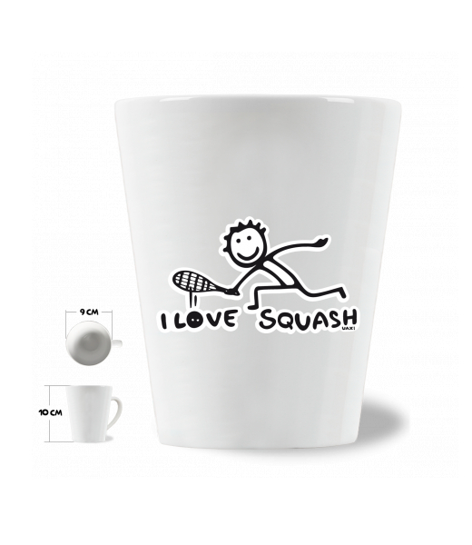 The original LATTE CUP UAX! a volume of 0.25L with design Cycling with design 1091 I LOVE SQUASH in color WHITE