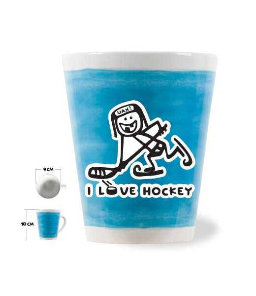 The original LATTE CUP UAX! a volume of 0.25L with design Cycling with design 1100 I LOVE HOCKEY in color BLUE ATOLL