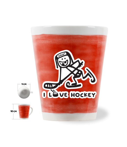 The original LATTE CUP UAX! a volume of 0.25L with design Cycling with design 1100 I LOVE HOCKEY in color TOMATO