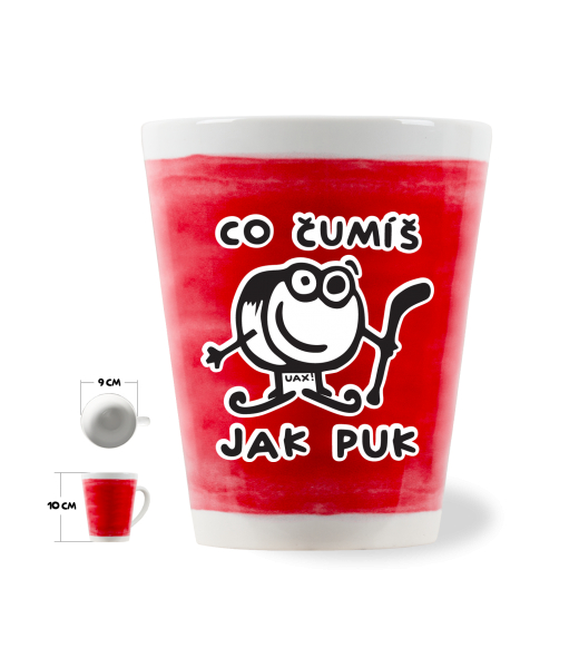 The original LATTE CUP UAX! a volume of 0.25L with design Cycling with design 1101 ČUMÍŠ JAK PUK in color CHILLY PEPPER RED