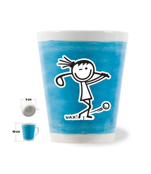 The original LATTE CUP UAX! a volume of 0.25L with design Cycling with design 1108 GOLF GIRL in color BLUE ATOLL