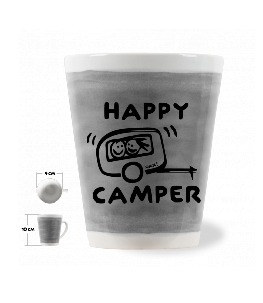 The original LATTE CUP UAX! a volume of 0.25L with design Cycling with design 1116 HAPPY CAMPER in color GRAY