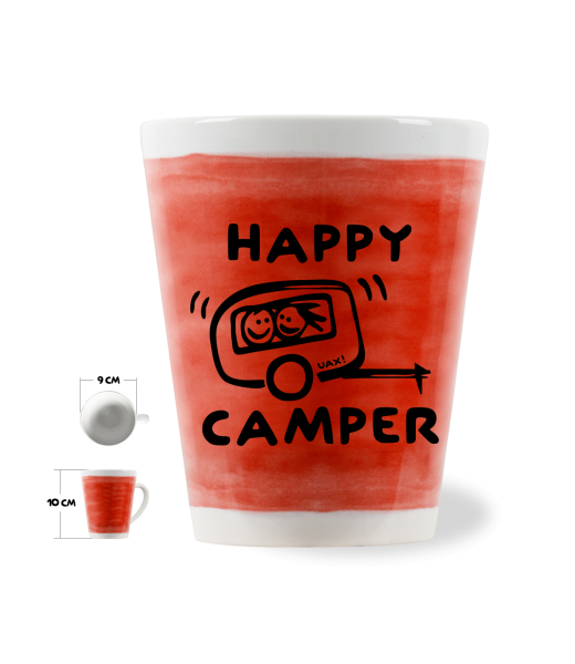 The original LATTE CUP UAX! a volume of 0.25L with design Cycling with design 1116 HAPPY CAMPER in color TOMATO