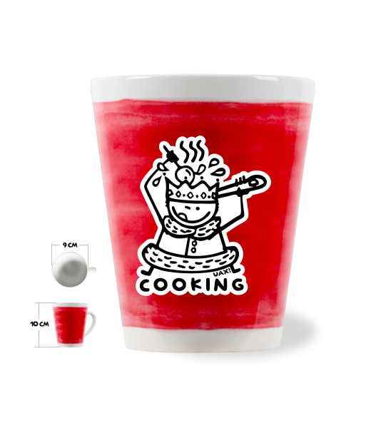 The original LATTE CUP UAX! a volume of 0.25L with design Cycling with design 1117 COOKING in color CHILLY PEPPER RED